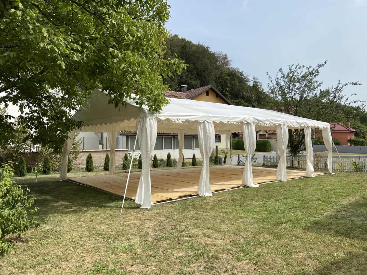 U ponudi imamo i podnice za šatore, koje osiguravaju ravnu, stabilnu i estetski urednu podlogu za goste, stolove i plesni podij.