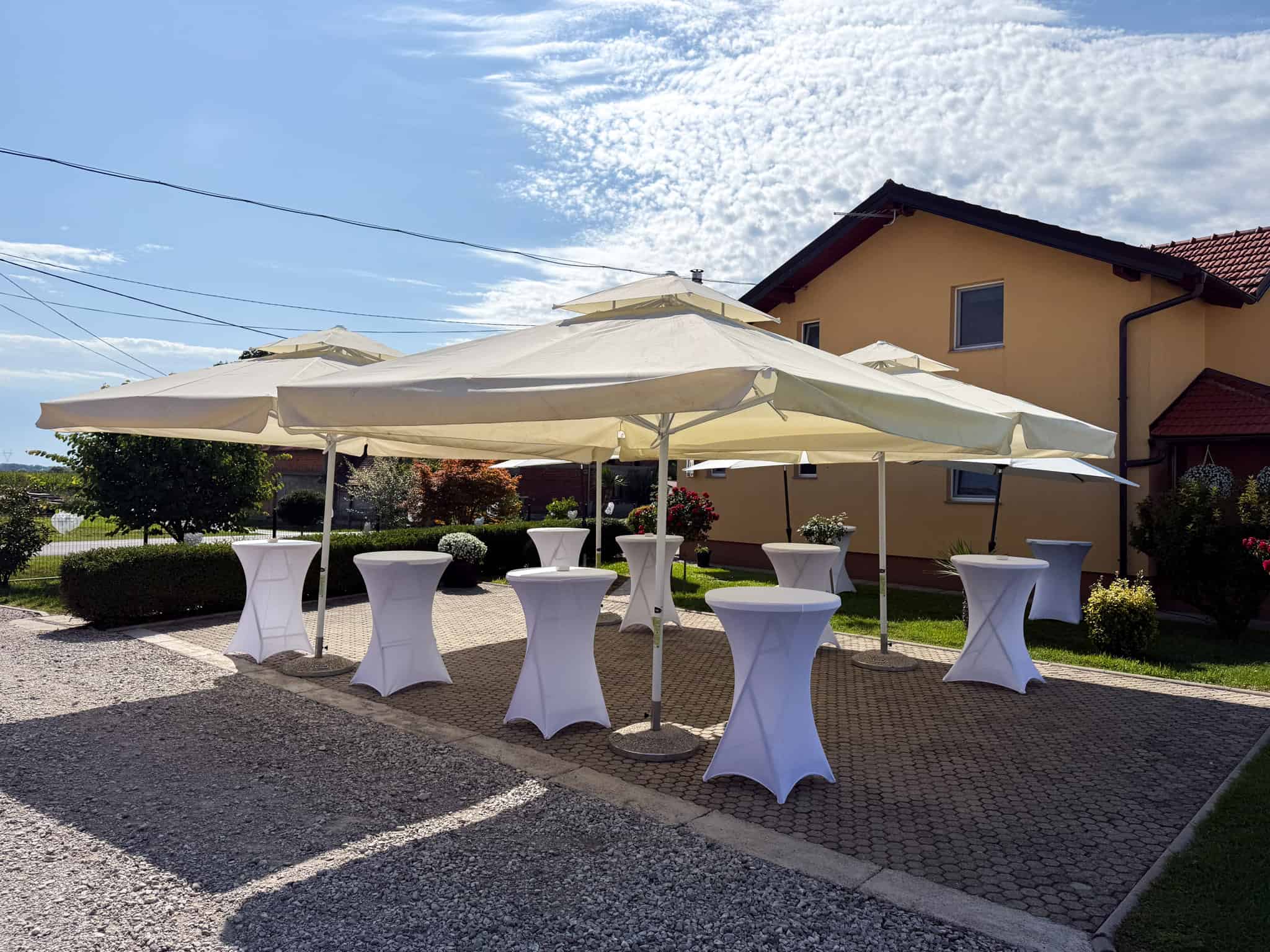 Najam šatora i catering opreme omogućuje organizaciju vjenčanja, domjenaka i evenata na gotovo svakoj lokaciji. Svečani šatori, pagode i pripadajuća oprema stvaraju funkcionalan i elegantan prostor, neovisno o tome radi li se o privatnom imanju, dvorištu, poslovnom prostoru ili otvorenoj lokaciji.