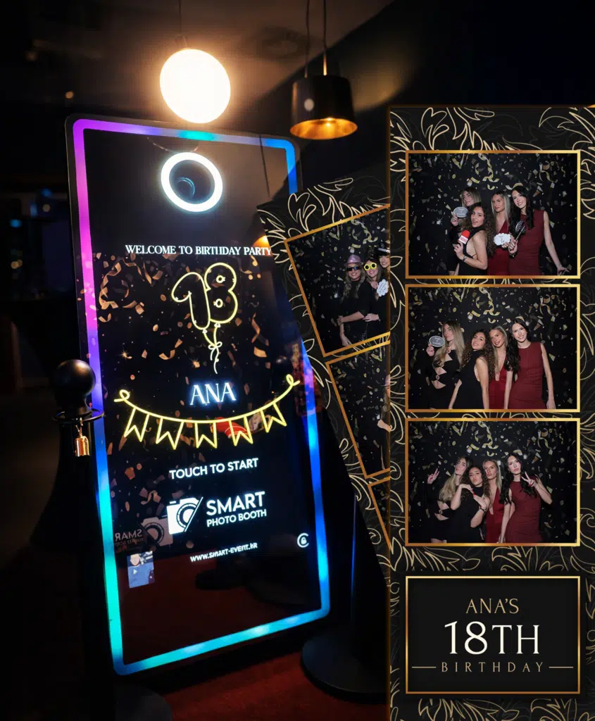 Savršen za proslave punoljetnosti. Personalizirani dizajn s imenom i godinom, moderni rekviziti i energična atmosfera. Fotografije se odmah ispisuju, a ekipa ih dijeli na društvenim mrežama.